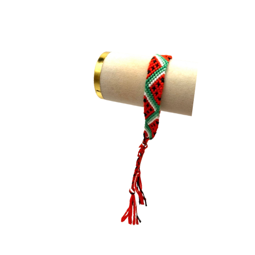 Celebrate a vibrant symbol of resilience with this Palestine Solidarity Woven Watermelon Bracelet, a handcrafted piece of wearable advocacy. Featuring a repeating watermelon pattern—an iconic symbol of the Palestinian flag colors—this design offers a colorful and profound way to carry a message of solidarity close to your heart.