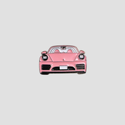 Hit the road with style using this chic and playful vinyl sticker featuring a sleek, luxury convertible sports car (resembling a Porsche). This high-performance machine is rendered in a delightful dusty rose or bubblegum pink finish, making a bold, feminine statement. The sticker captures the front view, highlighting the distinctive round headlights, sporty air intakes, and the open-top cabin.