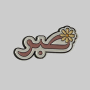 This beautiful design features the powerful word 'صبر' (Sabir/Sabr), meaning patience or endurance, rendered in elegant, modern script and accented with a delicate flower. It's a peaceful, meaningful reminder to trust the timing of your life.